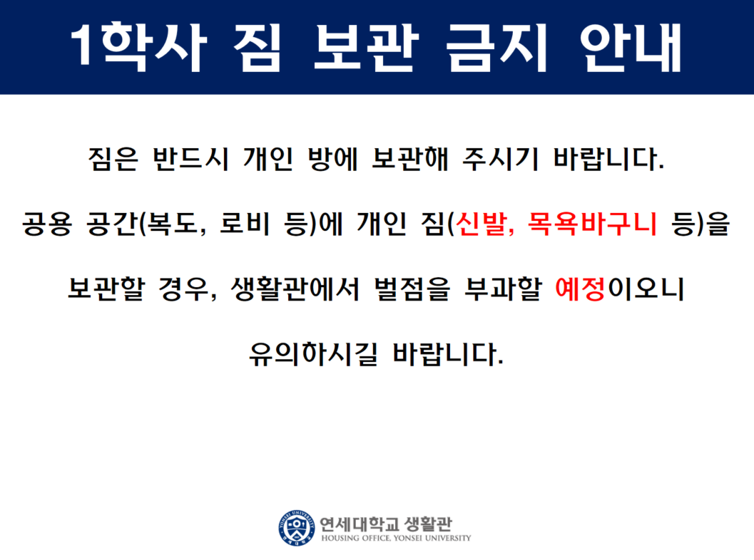 1학사 짐 보관 금지 안내