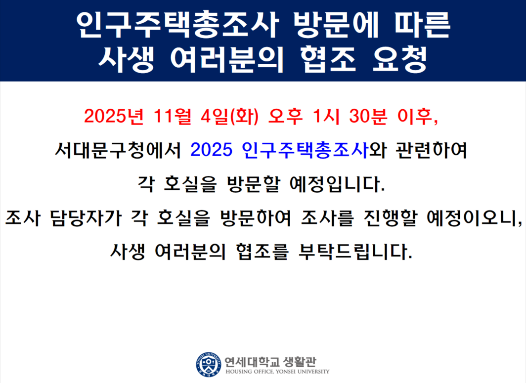 인구주택총조사 방문에 따른 사생 여러분의 협조 요청