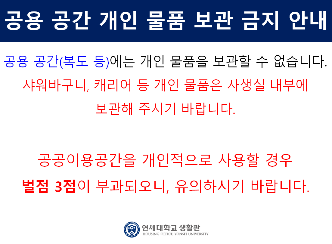 공용 공간 개인 물품 보관 금지 안내